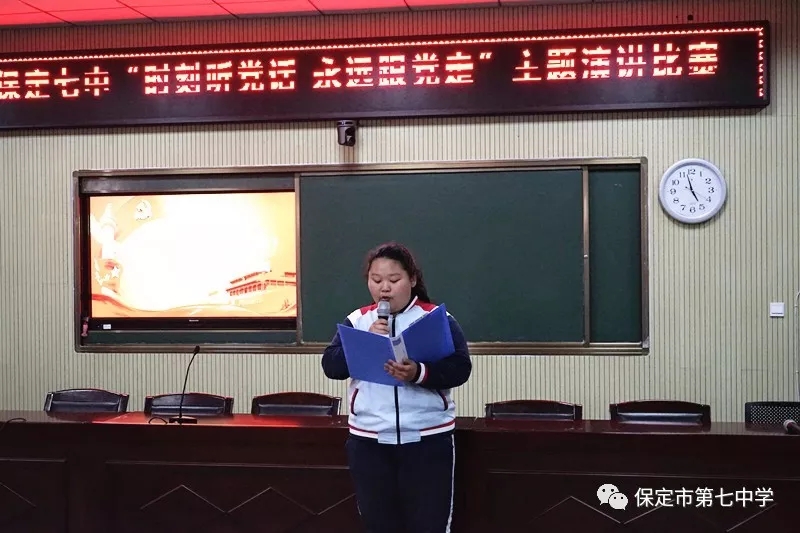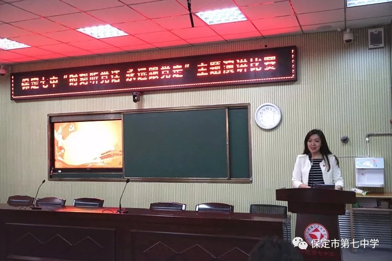 4月17日,保定七中教育处及团委在该校录播室组织“时刻听党话,永远跟党走”演讲比赛,三百多名师生参加了此次活动。