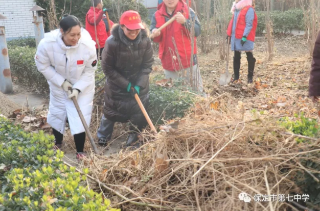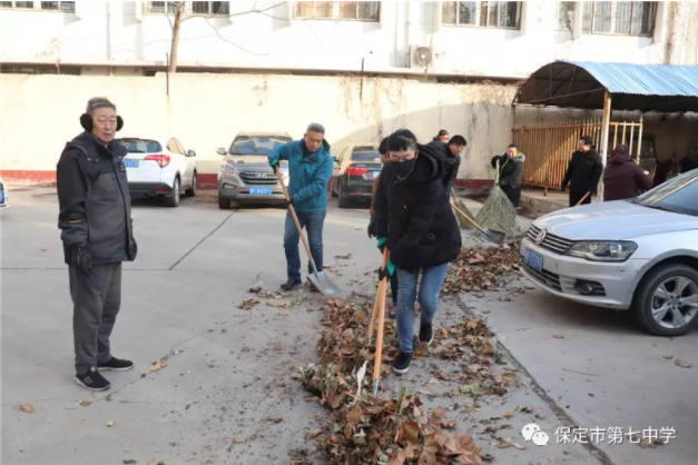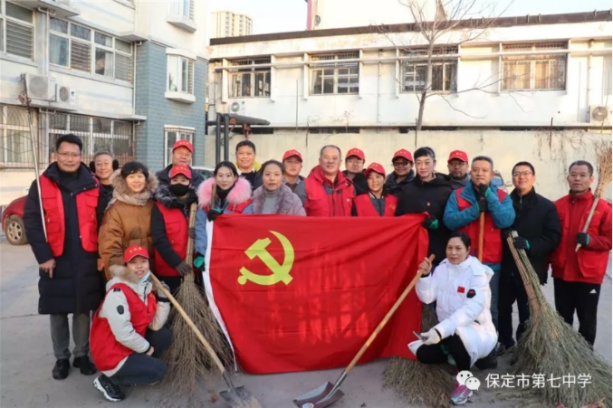 12月18日,本着“服务社区、服务群众”的宗旨,保定七中全体党员教师在吕校长、王书记的带领下,来到京电社区开展志愿服务活动,为社区做实事。