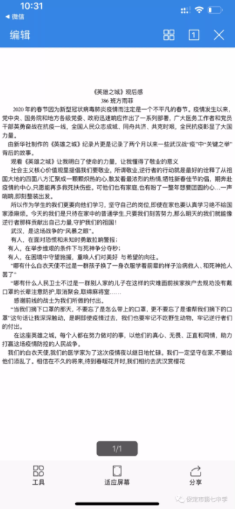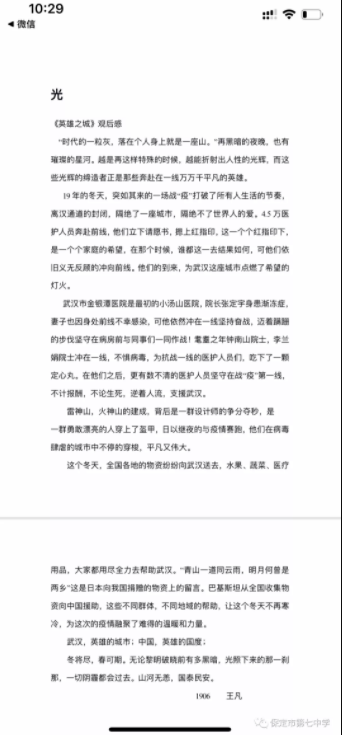 面对疫情中展现的仁义大爱,我校团委还组织全体团员观看了《英雄之城》纪录片,同学们纷纷为之感动,并书写了观后感。