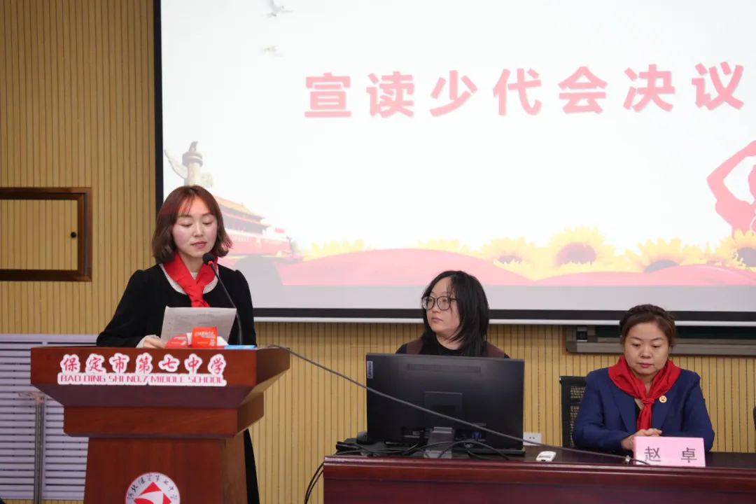 本次会议圆满结束,今后保定七中全体少先队员一定会牢记使命,努力学习,用实际行动为队旗添上一抹绚丽的色彩。