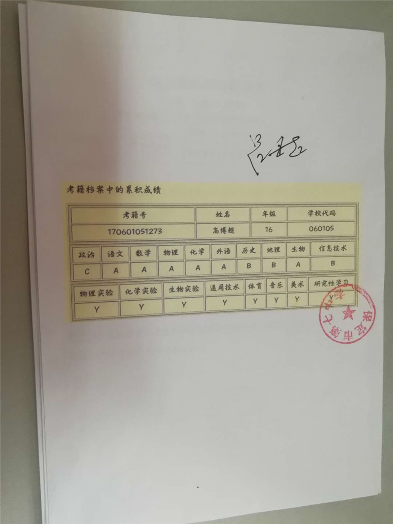 郝子业2019年自主招生通过公告名单