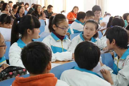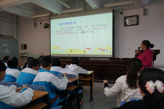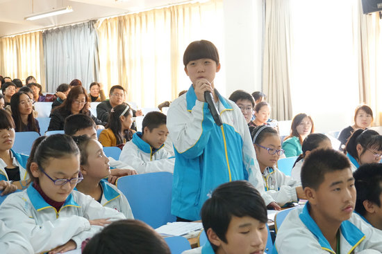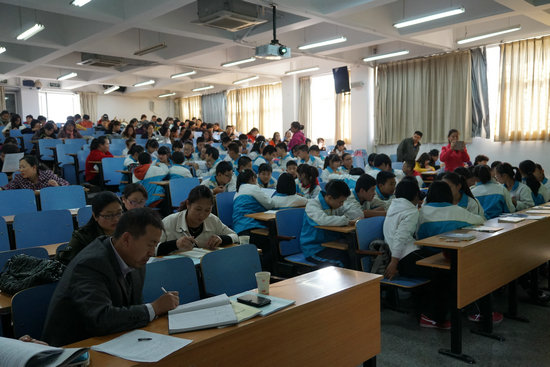 2014年10月14日,市语文教研会在我校阶梯教室召开。市、区教研员,我校屈副校长、杨丽教研组长和全市语文教师参加了会议。